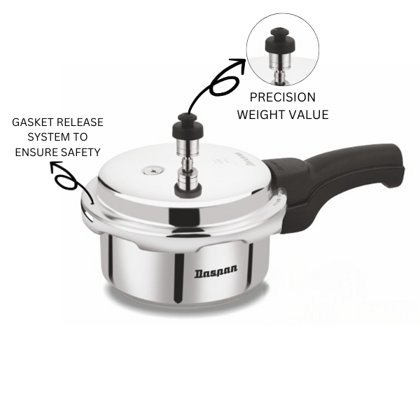 Safety is a top priority with the Daspan 2 Ltr Pressure Cooker. The outer lid design adds an extra layer of security, and the cooker features a strong locking mechanism that ensures the lid stays securely in place during cooking. The pressure release valve efficiently manages excess steam, reducing the risk of overcooking or accidents.
