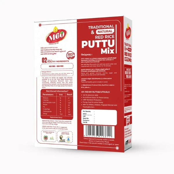 Enjoy a wholesome start to your day with M60 Traditional & Natural Red Rice Puttu Mix – 400gm. Made from premium quality red rice, this instant mix is packed with both taste and nutrition. Red rice is naturally rich in fiber and iron, making it ideal for a balanced and healthy diet.