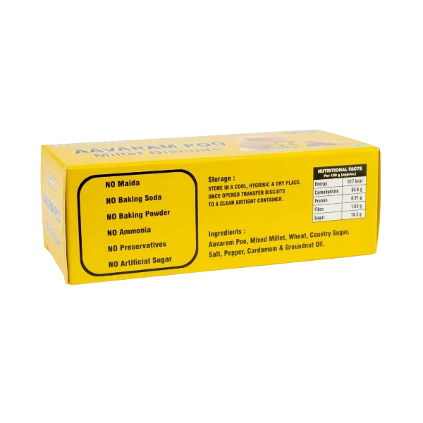 Pure, additive-free millet biscuits made with traditional Aavaram Poo for natural goodness: