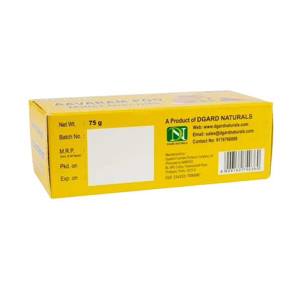 100% Natural Ingredients: Contains Aavaram Poo (Cassia auriculata flower), mixed millet, wheat, country sugar, salt, pepper, cardamom, and groundnut oil.