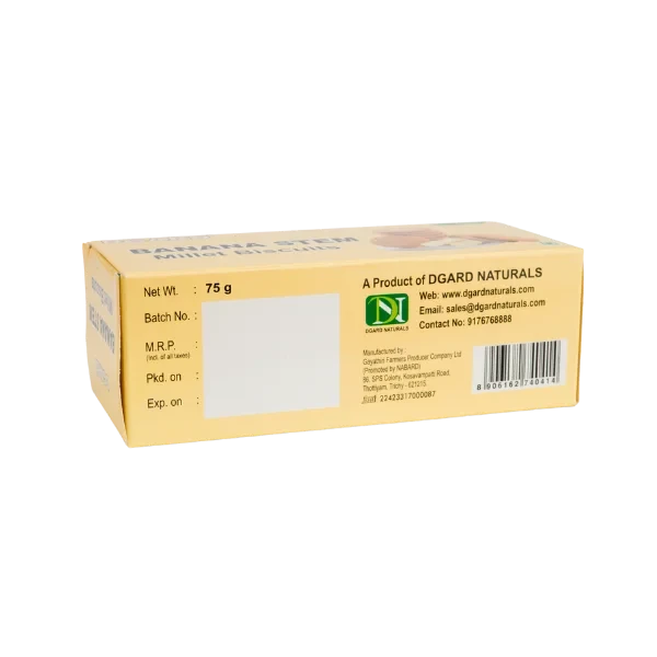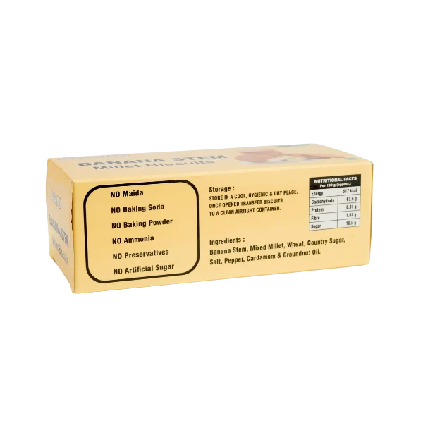 Banana Stem Millet Biscuits with 100% natural ingredients. High-fiber, zero additives, and digestion-friendly. Ideal healthy snack. 75g pack.