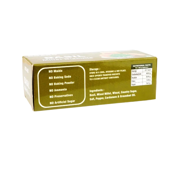 Key Ingredients: Basil, mixed millet, wheat, country sugar, salt, pepper, cardamom, groundnut oil.