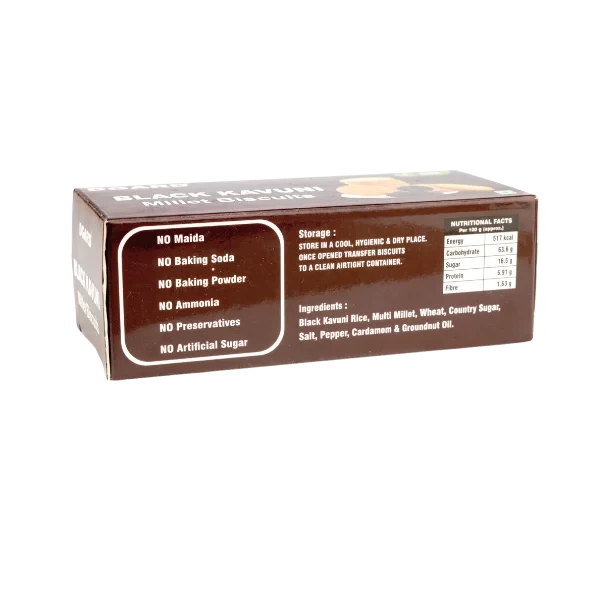 Premium Ingredients: Black Kavuni Rice, multi millet, wheat, country sugar, salt, pepper, cardamom, groundnut oil.