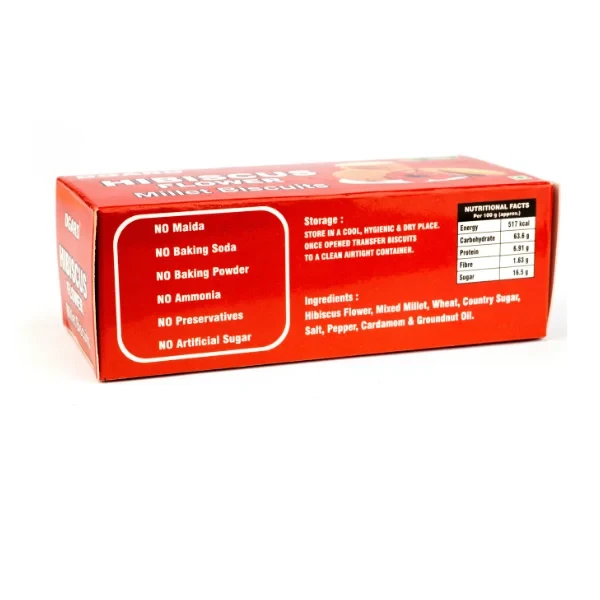 Hibiscus Flower Millet Biscuits: 100% natural ingredients. No chemicals, rich in antioxidants. Heart-healthy floral snack. 75g pack.