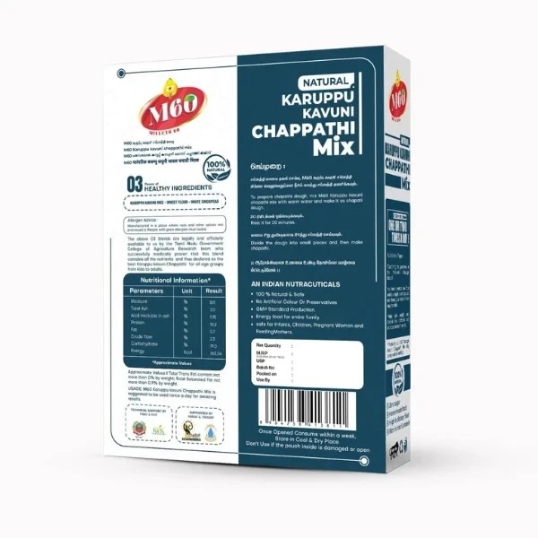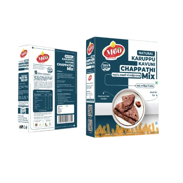 Natural Karuppu Kavuni Chappathi Mix – Discover the power of ancient grains with this gluten-free blend designed to nourish your body. Made from nutrient-dense Karuppu Kavuni millet, this mix supports eye health, boosts liver function, and delivers the authentic taste of traditional Indian flatbreads.
