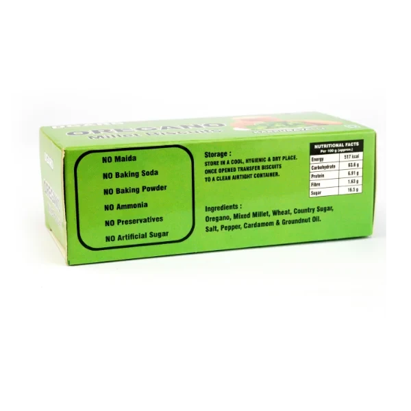 A healthy and tasty snack made with mixed millets, oregano, and natural ingredients — free from maida and artificial additives.