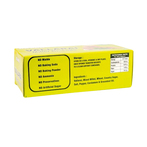 Nutrient-packed biscuits with Vallarai (Gotu Kola) herb and mixed millets. Free from artificial additives.